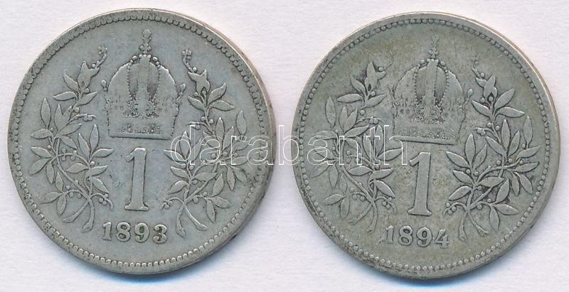 Leírás: Ausztria 1893-1894. 1K Ag "Ferenc József" (2xklf) T:2- Austria 1893-1894. 1 Corona Ag "Franz Joseph" (2xdiff) C:VF