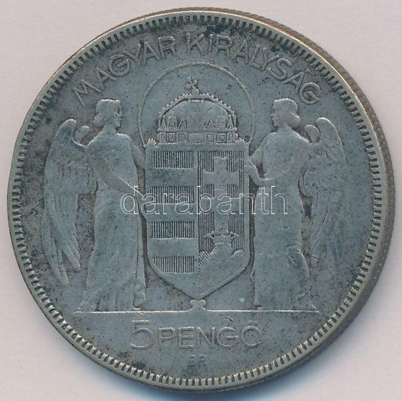 Leírás: 1930. 5P Ag "Horthy jobbra" T:3 patina
