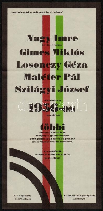 1989 Nagy Imre és társai újratemetésének kisplakátja,hajtásnyomokkal, ... https://www.darabanth.com/hu/333-Gyorsarveres/333.0/Plakat/Plakat~500035/1989-Nagy-Imre-es-tarsai-ujratemetesenek-kisplakatja-hajtasnyomokkal-31x15-cm~II1866654