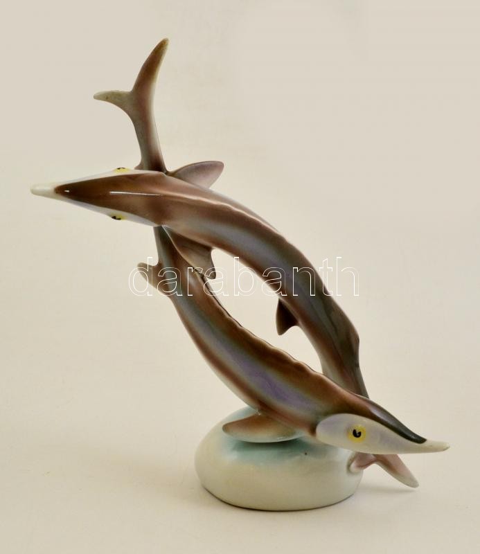 Leírás: Hollóházi porcelán vizapár, kézzel festett, jelzett, gyári mázhibával, m: 22 cm