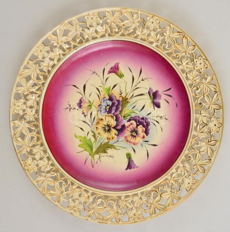 Leírás: XX. sz. eleje: Josef Steidl Znaim áttört fajansz dísztál, kézzel festett, jelzett, d:38 cm / Fayance bowl. Hand painted, signed, d: 38 cm