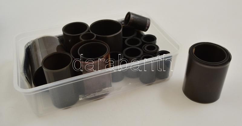 Vegyes fotónegatív tétel: városképek, zsinagóga, Gagarin Budapesten, Ikarus busz, Sopron, Pécs, India stb., összesen 434 képkockányi tekercs kis dobozban