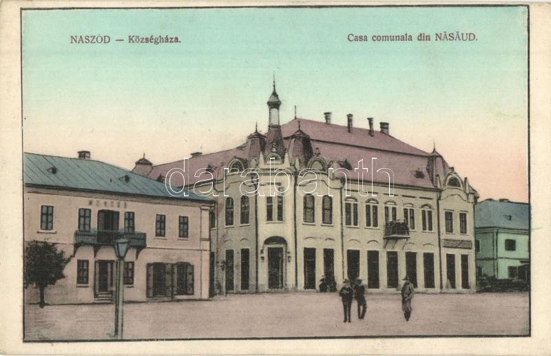 Naszód, Nasaud; Községháza (városháza), kiadja Káhán Eliás / town hall https://www.darabanth.com/hu/334-Gyorsarveres/334.0/Kepeslapok/Erdely~2000007/Naszod-Nasaud-Kozseghaza-varoshaza-kiadja-Kahan-Elias-town-hall~II1872135
