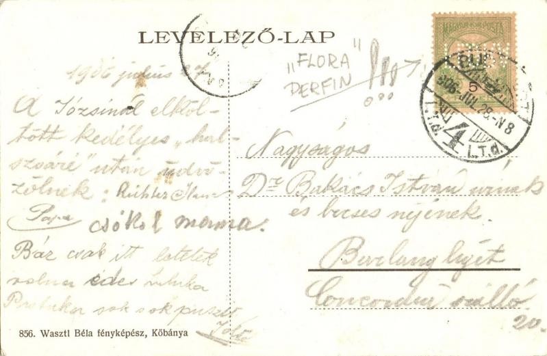 Leírás: 1906 Budapest II. Csalogány utca 27. Richter József borháza és üzlete, kislány az ablakban. Kiadja Wasztl Béla fényképész 856. + perfin bélyeg (EK)