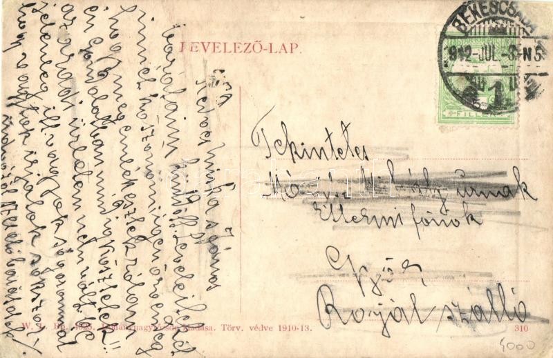 Leírás: 1912 Békéscsaba, Fő tér, motorvonat. W.L. Bp. 4025. (r)