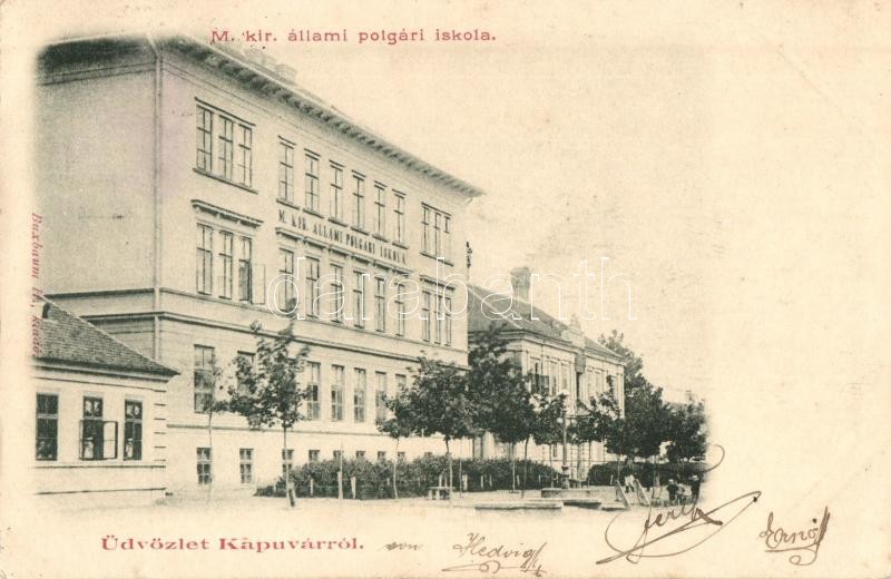 Kapuvár, M. kir. állami polgári iskola. Kiadja Buxbaum H. https://www.darabanth.com/hu/334-Gyorsarveres/334.0/Kepeslapok/Magyarorszag~2000006/Kapuvar-M-kir-allami-polgari-iskola-Kiadja-Buxbaum-H~II1873095