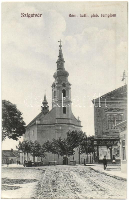 Leírás: Szigetvár, Római katolikus plébánia templom, Deutsch Dávid üzlete. Kozáry Ede kiadása