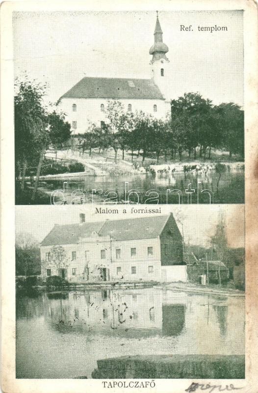 Tapolcafő (Pápa), Református templom, Malom a forrással (fl) https://www.darabanth.com/hu/334-Gyorsarveres/334.0/Kepeslapok/Magyarorszag~2000006/Tapolcafo-Papa-Reformatus-templom-Malom-a-forrassal-fl~II1873829