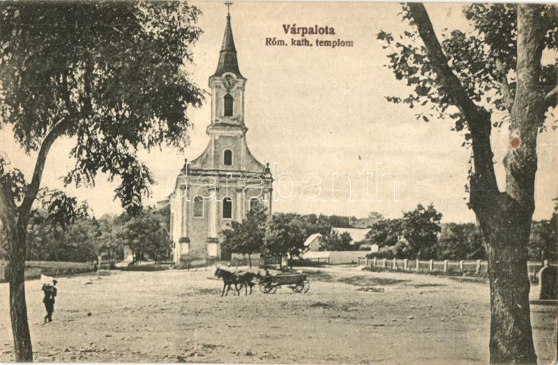 Várpalota, Római katolikus templom, lovasszekér. Kiadja Ország János é... https://www.darabanth.com/hu/334-Gyorsarveres/334.0/Kepeslapok/Magyarorszag~2000006/Varpalota-Romai-katolikus-templom-lovasszeker-Kiadja-Orszag-Janos-es-Tarsa-vagott-cut~II1871872