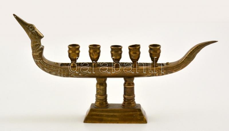Réz ötágú, hajó alakú gyertyatartó, 33x18 cm. https://www.darabanth.com/hu/334-Gyorsarveres/334.0/Mutargy-papirregiseg-egyeb/Bolhapiac~11/Rez-otagu-hajo-alaku-gyertyatarto-33x18-cm~II1874947