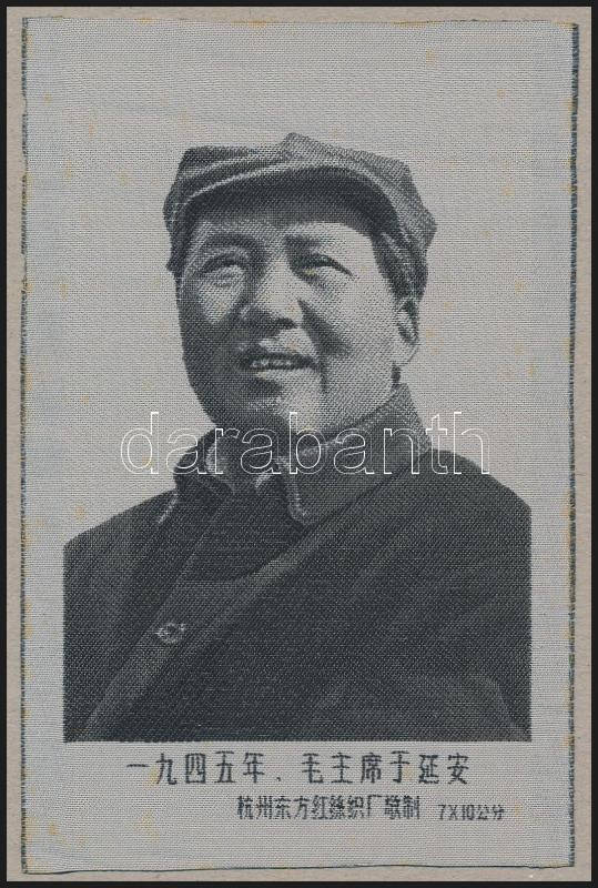 Leírás: cca 1950 Kína: Mao Ce Tung selyemképe / China Mao Zedong silk picture 9x13 cm