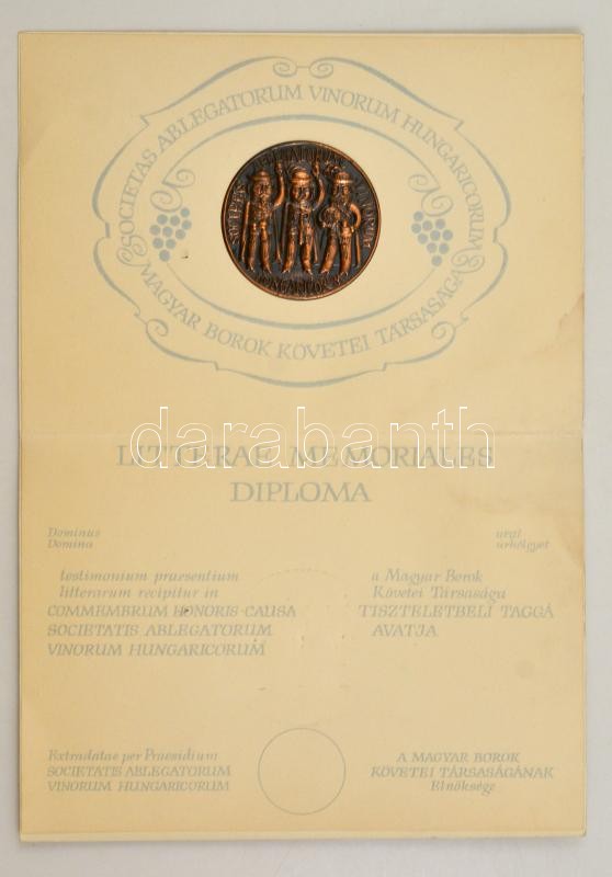 Leírás: cca 1970 Magyar Borok Követei Társasága tiszteletbeli taggá avatási diplomája, kitöltetlen, hajtott