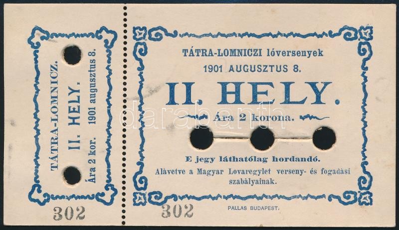 1901 Tátralomnic, lóverseny belépőjegy https://www.darabanth.com/hu/334-Gyorsarveres/334.0/Mutargy-papirregiseg-egyeb/Okmanyok~17/1901-Tatralomnic-loverseny-belepojegy~II1874236