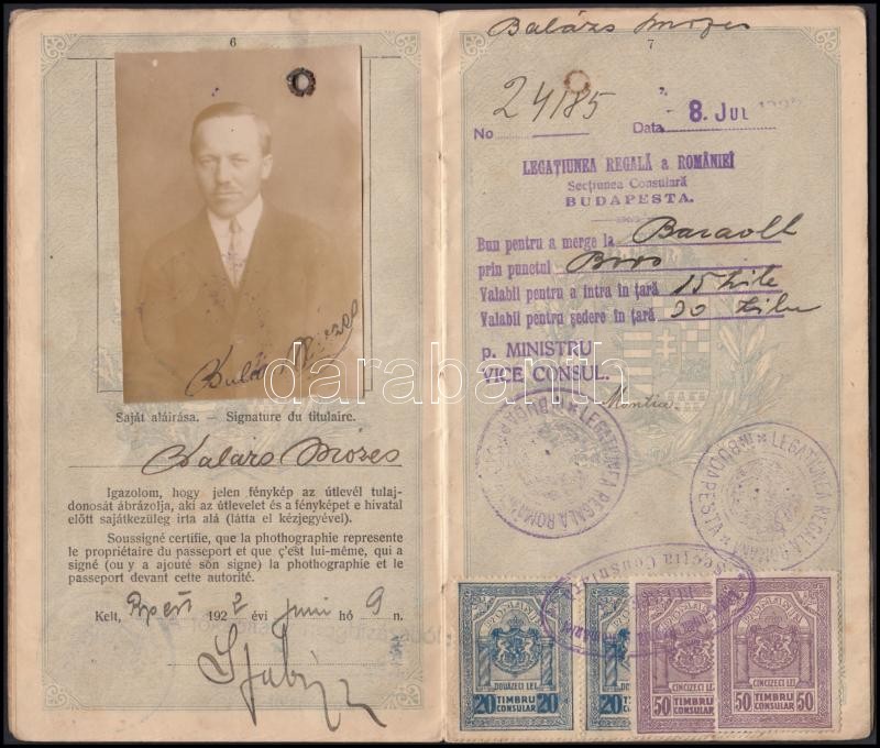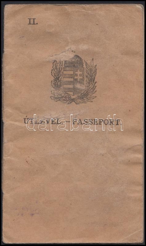 1922 Bp., A Magyar Királyság által kiállított fényképes útlevél https://www.darabanth.com/hu/334-Gyorsarveres/334.0/Mutargy-papirregiseg-egyeb/Okmanyok~17/1922-Bp-A-Magyar-Kiralysag-altal-kiallitott-fenykepes-utlevel~II1873071