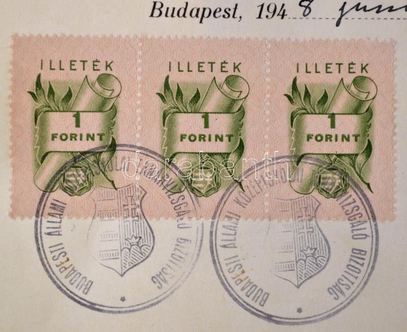 Leírás: 1947-1950 Niederhauser Emil (1923-2010) történész iskolai iratai: középiskolai tanárvizsgálati értesítők (3 db), középiskolai tanári oklevél hiteles másolata, valamint anyakönyvi kivonatának és állampolgársági bizonyítványának hiteles másolatai, pecséttekkel, illetékbélyegekkel.