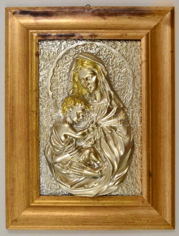 Leírás: Ezüsttel bevont nagyméretű gipsz plasztika. Madonna. Keret mérete / Silver plated gips plaster 41x32 cm