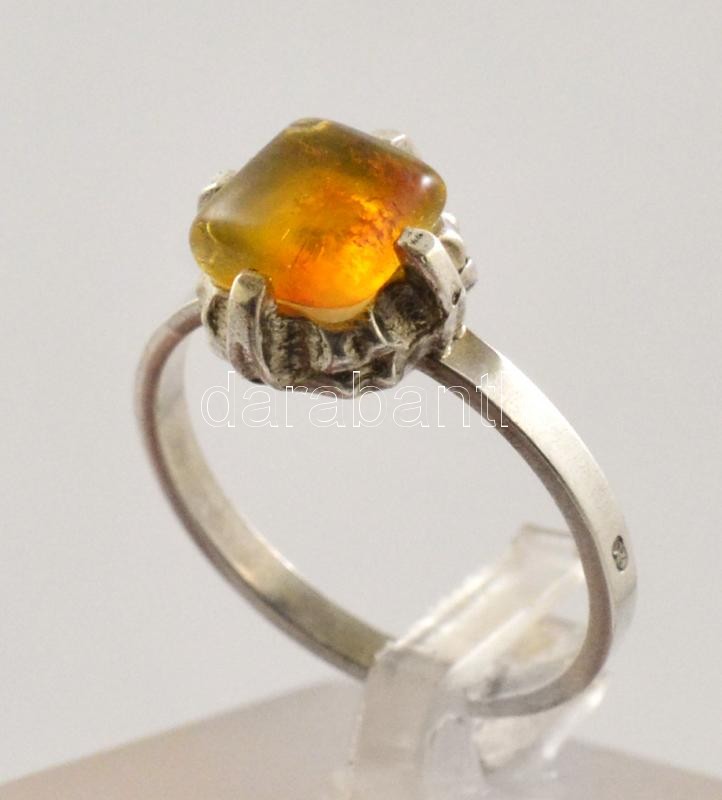Leírás: Ezüst(Ag) gyűrű borostyánnal, jelzett, méret: 56, bruttó: 2,3 g