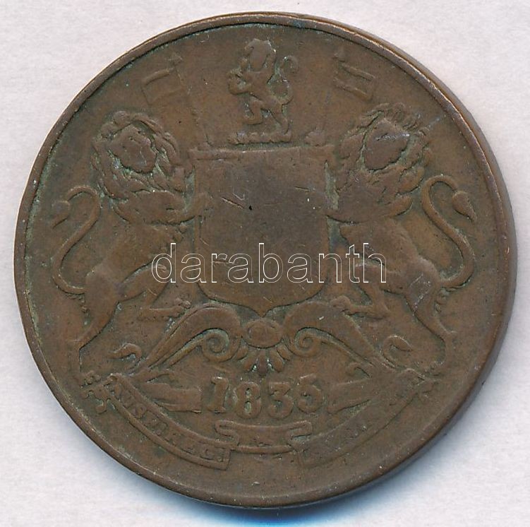 British India /... https://www.darabanth.com/hu/334-Gyorsarveres/334.0/Numizmatika/Kulfoldi-fem-es-ezustpenzek~500013/Brit-India-Kelet-Indiai-Tarsasag-1835-12A-Cu-T2--British-India-East-India-Company-1835-1~II1874709