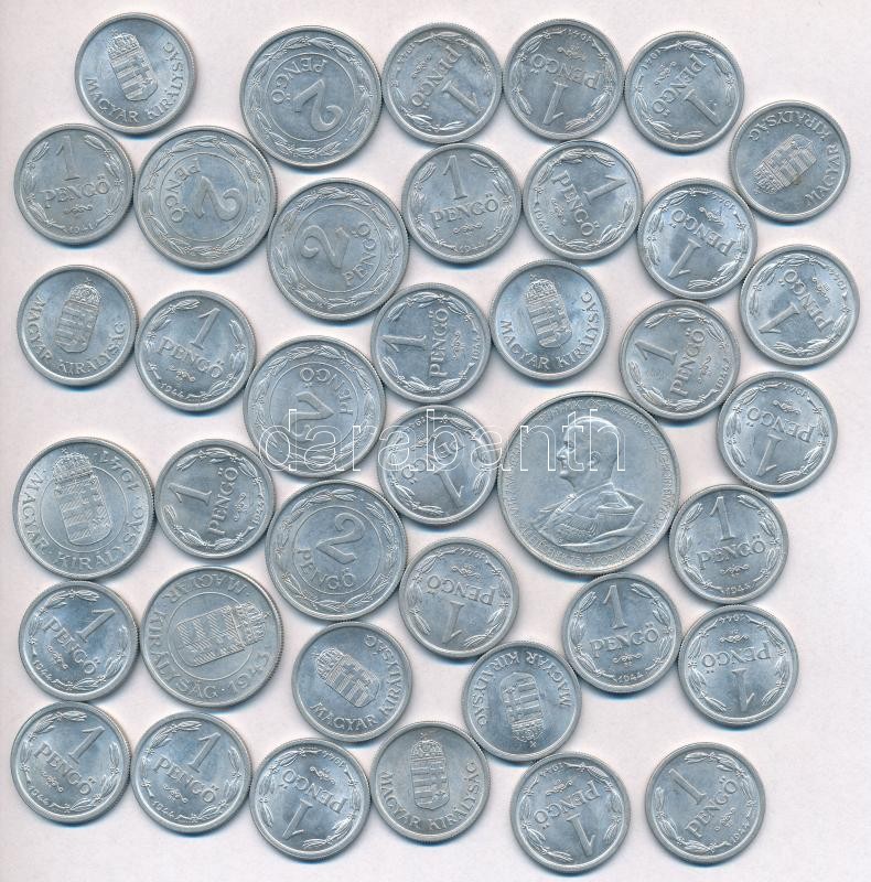 Leírás: Vegyes magyar Al pengő fémpénz tétel ~73g-os súlyban T:vegyes