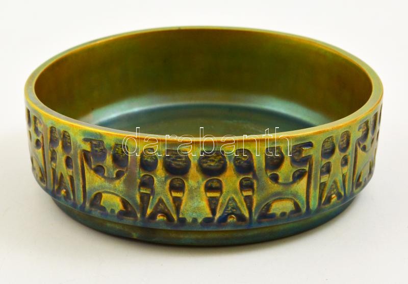 Leírás: Zsolnay eozin mázas tál, jelzett, kopásnyomokkal, d: 19 cm