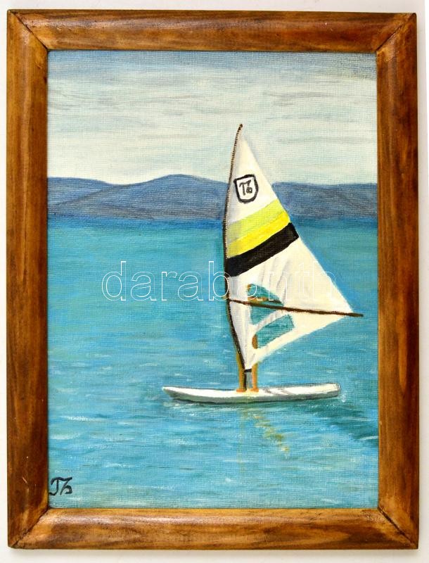 Leírás: Fantha Györgyné Tatai Zsuzsanna (1938): Szörfös. Olaj, farost. 17x24 cm Keretben