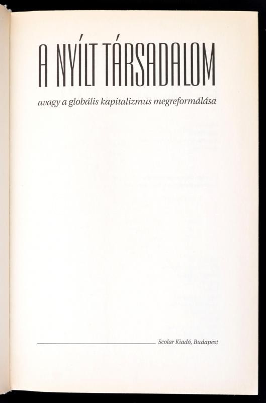 Soros György: A nyílt társadalom vagy a globális kapitalizmus megreformálása. Fordította: Nagy Mária. Bp.,2001,Scolar. Kiadói kartonált papírkötés, kiadói papír védőborítóban.