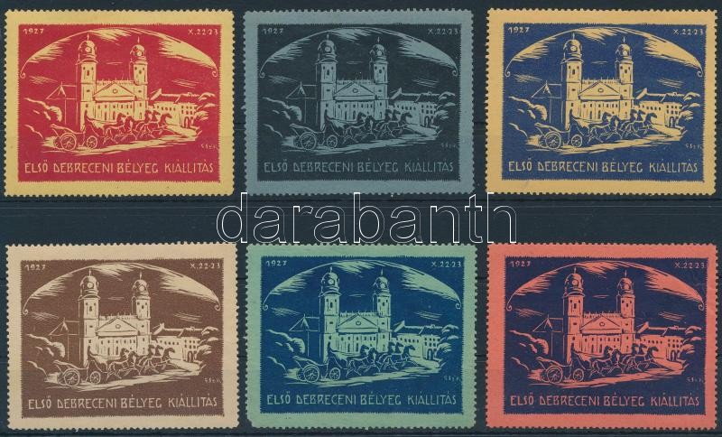 Leírás: 1927 I. Debreceni bélyegkiállítás 6 klf levélzáró