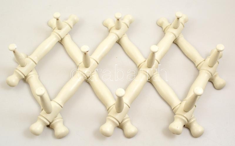 Fa harmonikás ruhatartó fogas, fehér színben, kopásnyomokkal, 80×32 cm https://www.darabanth.com/hu/335-Gyorsarveres/335.0/Mutargy-papirregiseg-egyeb/Bolhapiac~500011/Fa-harmonikas-ruhatarto-fogas-feher-szinben-kopasnyomokkal-80C39732-cm~II1878328