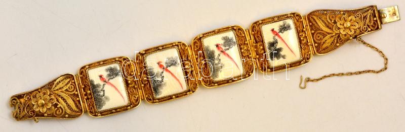 Leírás: Festett csont + réz kínai karkötő díszdobozban / Painted bone and copper Chinese bracelet 20 cm