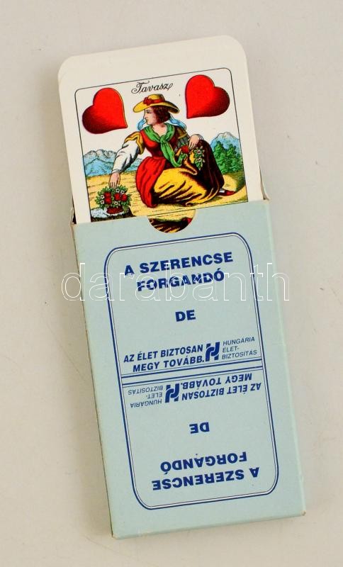 Leírás: Hungária Életbiztosítás magyar kártya pakli, eredeti dobozában, szép állapotban