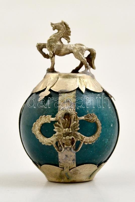 Leírás: Nagyméretű jáde gömb lovas fém foglalatban, m: 5,5 cm