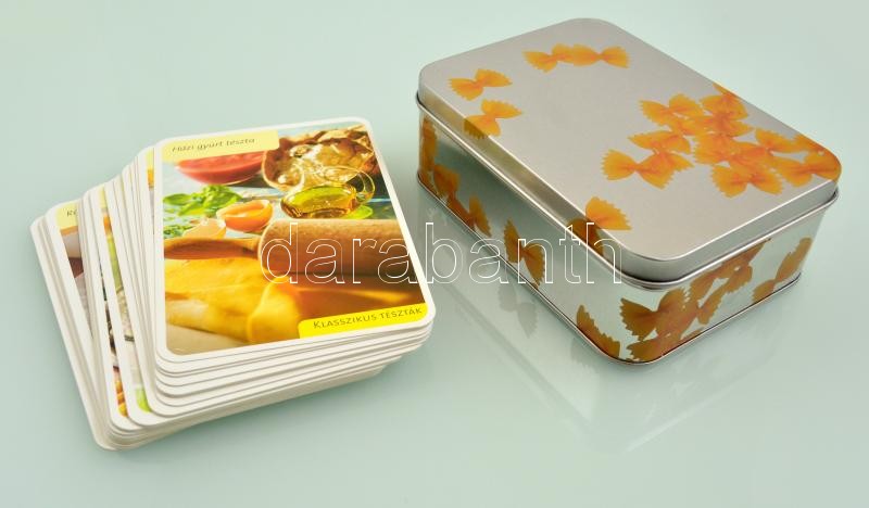 Receptkártyák tésztaételek főzéséhez képillusztrációval, 52 db, tészta... https://www.darabanth.com/hu/335-Gyorsarveres/335.0/Mutargy-papirregiseg-egyeb/Bolhapiac~500011/Receptkartyak-tesztaetelek-fozesehez-kepillusztracioval-52-db-tesztamintas-fem-dobozb~II1882273