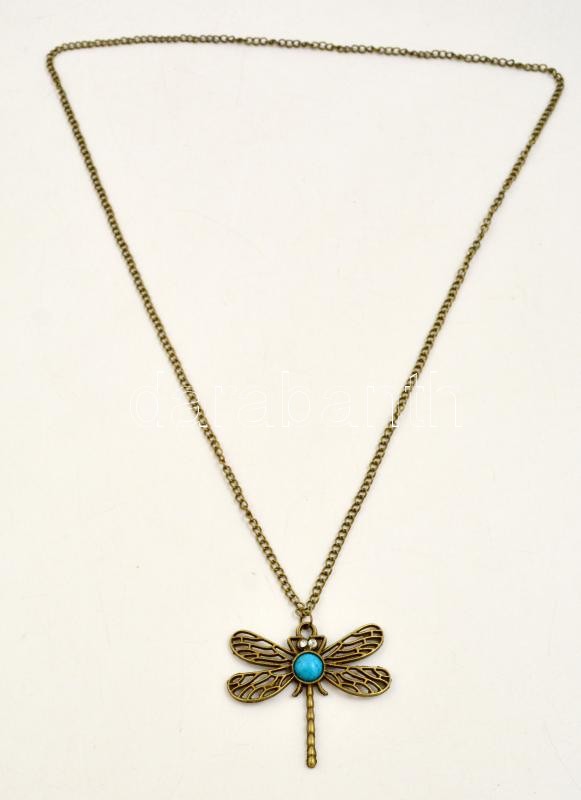 Leírás: Rézszínű szitakötő medál lánccal, h: 62 cm