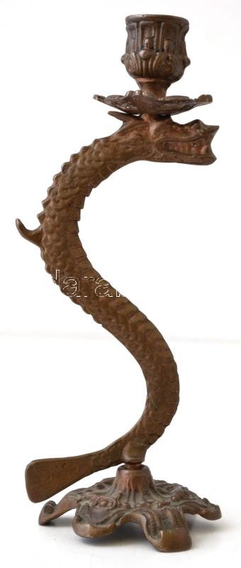 Leírás: Sárkányos fém gyertyatartó, 23,5 cm