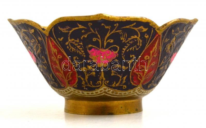 Leírás: Zománc díszített réz tálka, m:5,5 cm, d:11,5 cm