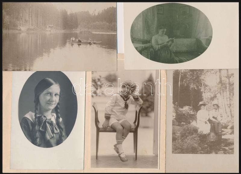 Leírás: cca 1900-1930 Vegyes fotó tétel, műtermi fotók, életképek, köztük keményhátú fotók, 10x5 és 14x10 cm közti méretben