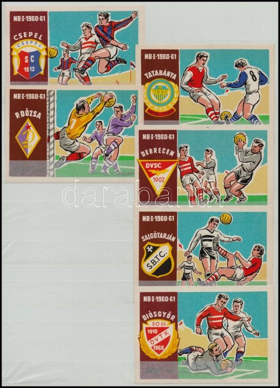 1960-1961 Futballcsapatok nagyméretű gyufacímke, 14 db + ív https://www.darabanth.com/hu/335-Gyorsarveres/335.0/Mutargy-papirregiseg-egyeb/Gyufacimke~500024/1960-1961-Futballcsapatok-nagymeretu-gyufacimke-14-db-plus-iv~II1882181