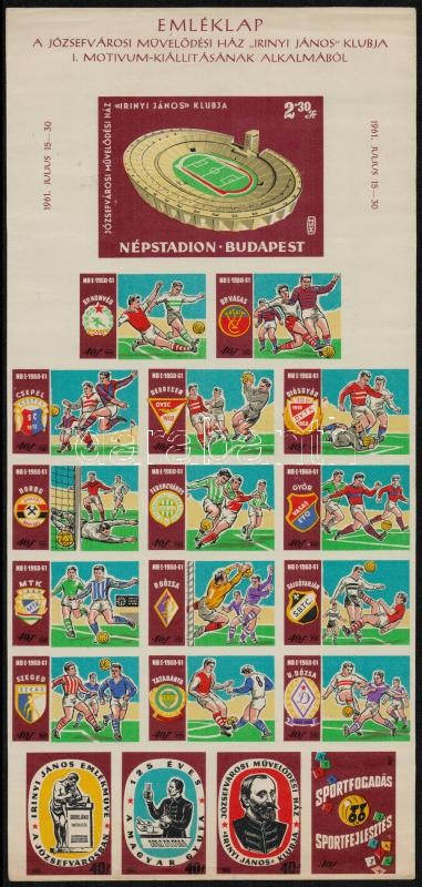Leírás: 1960-1961 Futballcsapatok nagyméretű gyufacímke, 14 db + ív