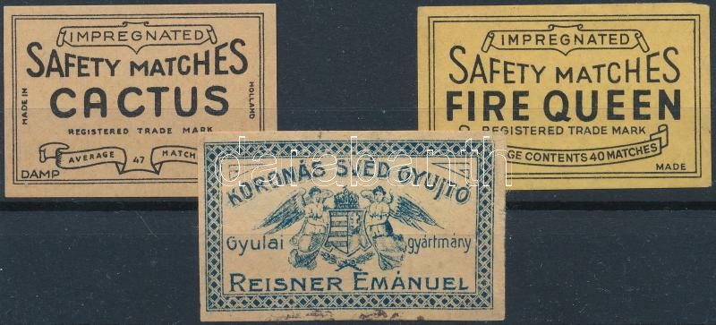 Leírás: 3 db régi gyufacímke (Cactus, Fire Queen, Reiner Emánuel)