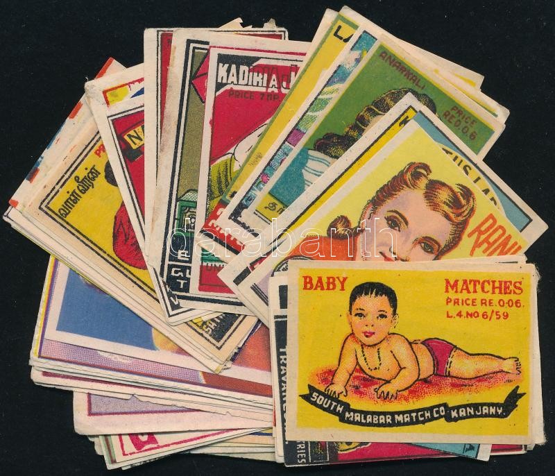 Leírás: 70 db indiai gyufacímke: 45 db "férfi figura" téma, 25 db "gyermek és nők" / Indian match labels with various motifs: man, child and woman