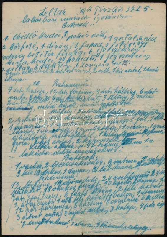 1944 Bp., Leltár lakásban maradó ingóságokról https://www.darabanth.com/hu/335-Gyorsarveres/335.0/Mutargy-papirregiseg-egyeb/Judaika~500028/1944-Bp-Leltar-lakasban-marado-ingosagokrol~II1882598