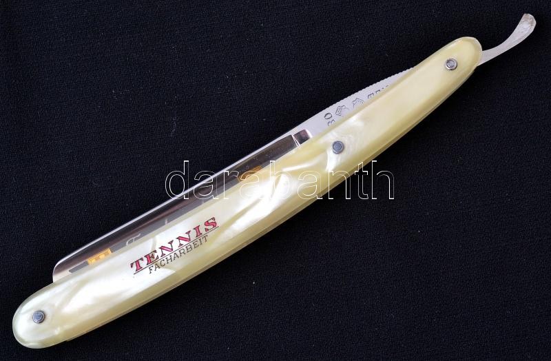 Leírás: Tennis Solingen 80-as borotva gyöngyház utánzatú cell. nyéllel, eredeti tokban h: 24 cm