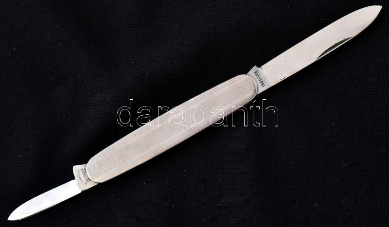 Leírás: Wilhelm Wagner Solingen rozsdamenes nyelű zsebkés, jelzett, két pengés, h: 16 cm