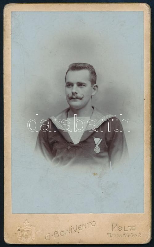 1909 Pola, Hadi tengerész portréja, keményhátú fotó, 11×6,5 cm https://www.darabanth.com/hu/335-Gyorsarveres/335.0/Mutargy-papirregiseg-egyeb/Militaria~500031/1909-Pola-Hadi-tengeresz-portreja-kemenyhatu-foto-11C3976-5-cm~II1882829