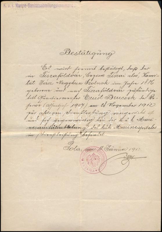 1911-1913 Pola, Tengerész dokumentumai, 2 db https://www.darabanth.com/hu/335-Gyorsarveres/335.0/Mutargy-papirregiseg-egyeb/Militaria~500031/1911-1913-Pola-Tengeresz-dokumentumai-2-db~II1882824