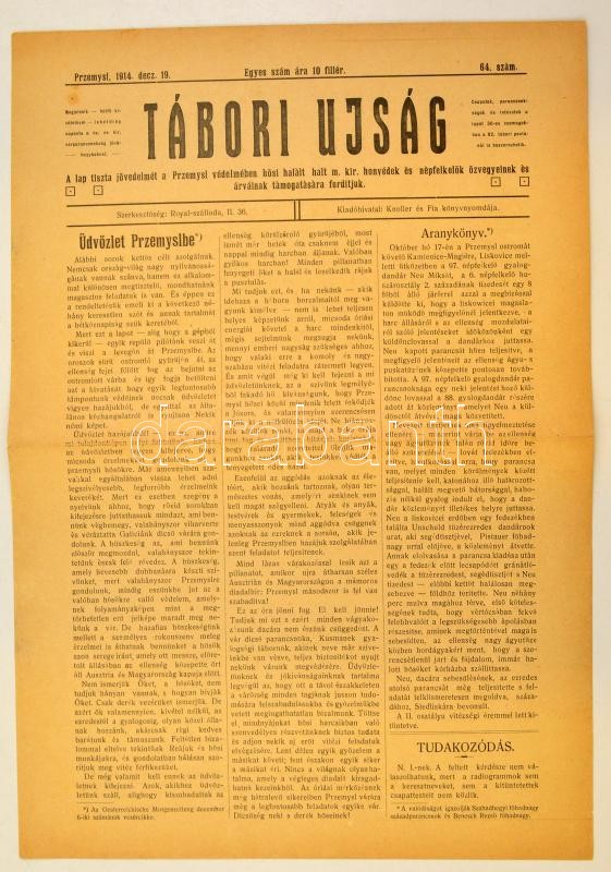 1914 Przemysl, A Tábori Újság 64. száma https://www.darabanth.com/hu/335-Gyorsarveres/335.0/Mutargy-papirregiseg-egyeb/Militaria~500031/1914-Przemysl-A-Tabori-Ujsag-64-szama~II1878597