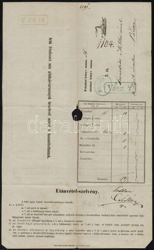 Leírás: 1868 A Középdunai Gőzhajózási Társaság Honvéd hajó fuvarlevele / Bill of fright of Middle-Danube Steamship Company ship Honvéd.