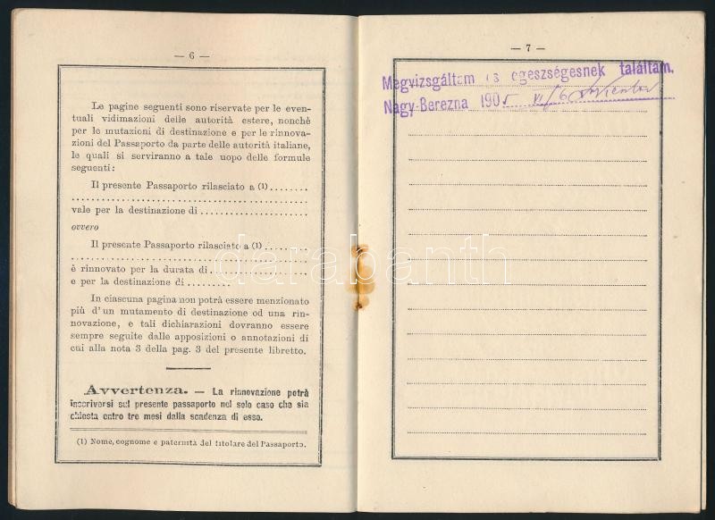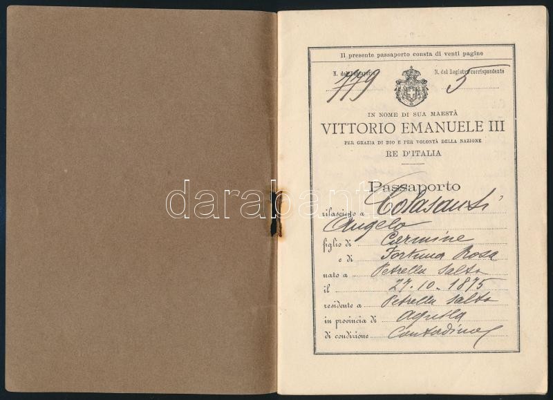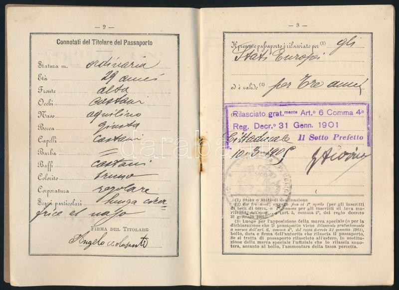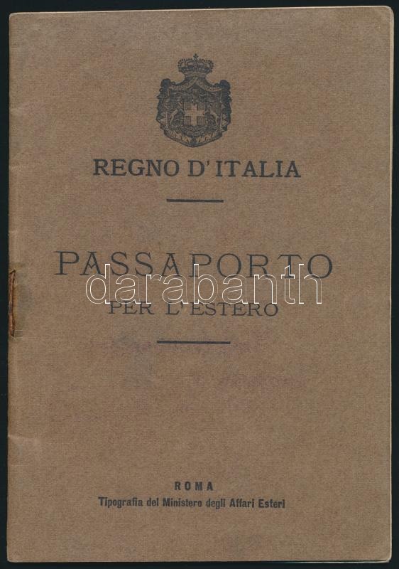 1901 Olasz útlevél / Italian passport https://www.darabanth.com/hu/335-Gyorsarveres/335.0/Mutargy-papirregiseg-egyeb/Okmanyok~500017/1901-Olasz-utlevel-Italian-passport~II1878540