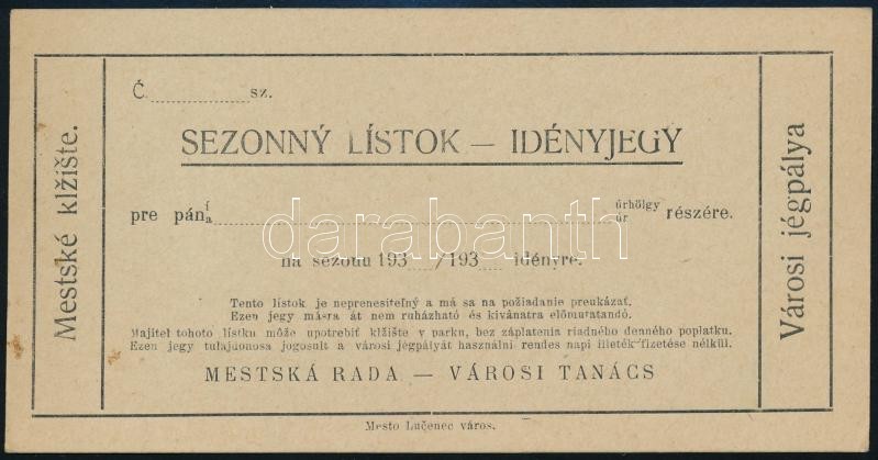 1931 Losonc, Idényjegy a városi jégpályára https://www.darabanth.com/hu/335-Gyorsarveres/335.0/Mutargy-papirregiseg-egyeb/Okmanyok~500017/1931-Losonc-Idenyjegy-a-varosi-jegpalyara~II1882608