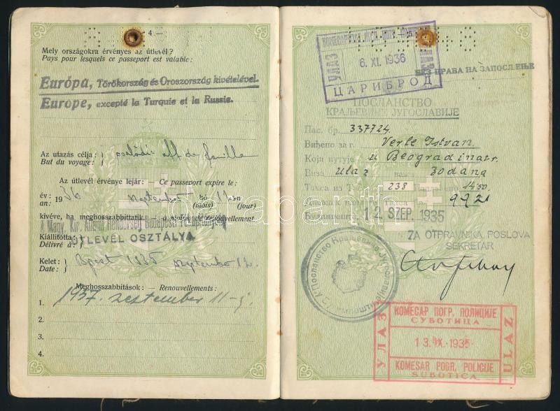 Leírás: 1935 Útlevél sok európai bejegyzéssel